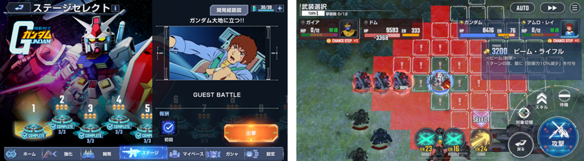 マス目上のマップでユニットを動かして戦う「ジージェネレーション」シリーズのプレイスタイルを踏襲しつつ、スマホで手軽に遊べるオートモードも本作では搭載!