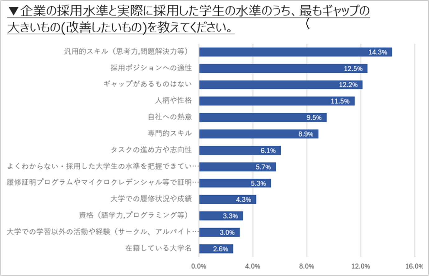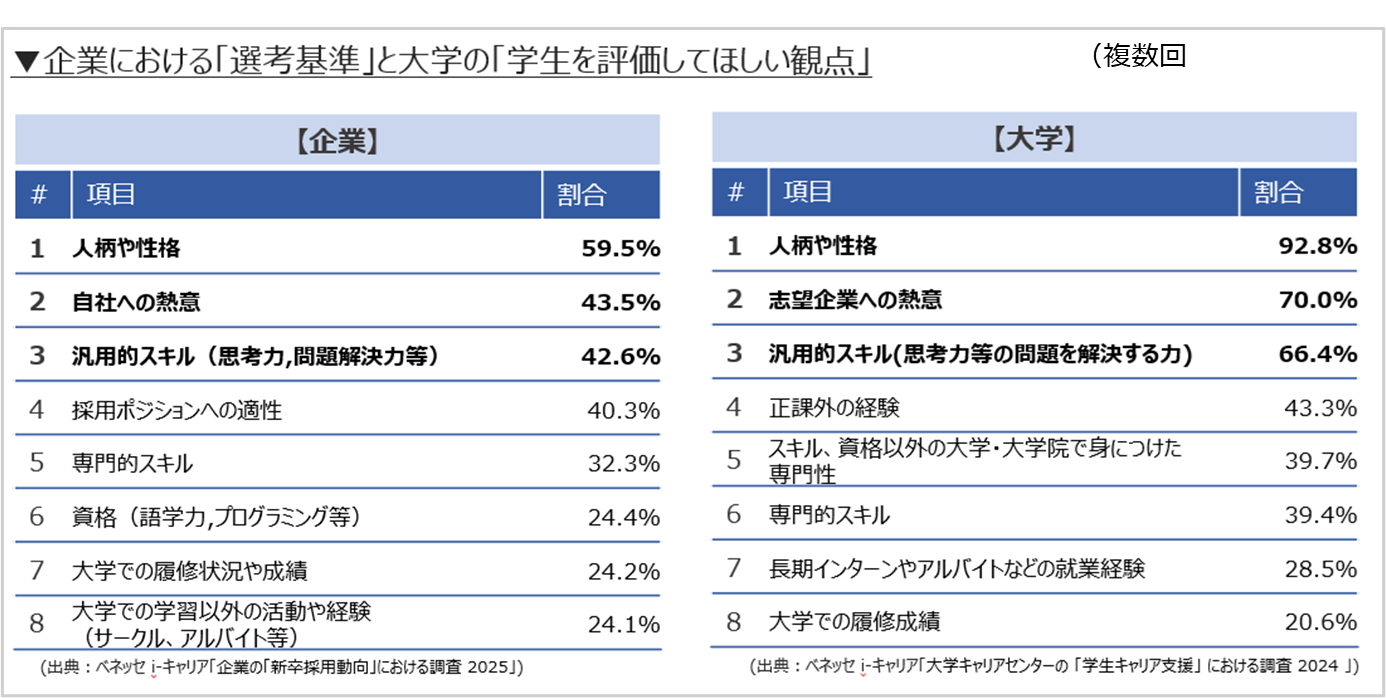 ※3:「まなぶとはたらくをつなぐ研究所」の調査1.「企業の「新卒採用動向」における調査 2025」(回答823社/2025年12月レポート公開予定) 、2.「大学キャリアセンターの 「学生キャリア支援」 における調査 2024」(回答277大学/https://www.benesse-i-career.co.jp/news/20241220_2release.pdf)からデータを引用。図1は1.と2.のデータを引用しての比較、図2は1.から引用。