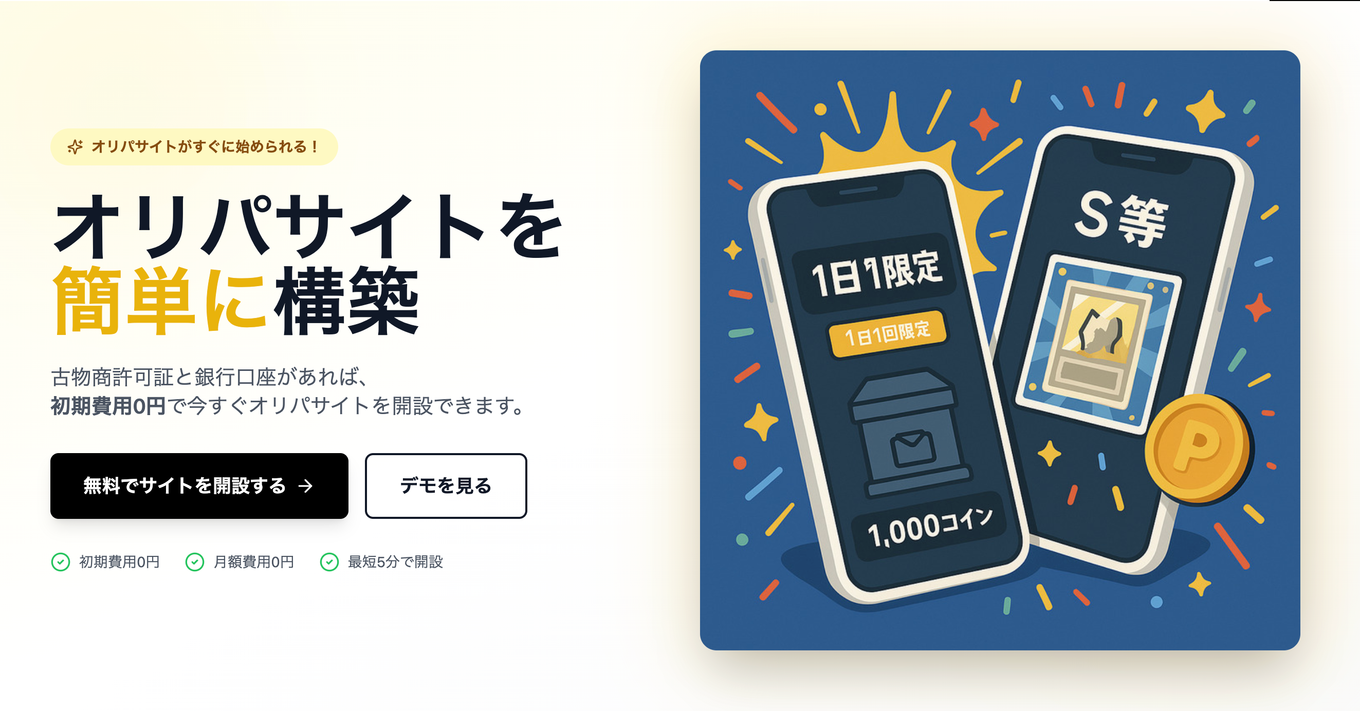2026年初旬の正式リリースを予定。オリパイベント・商品登録などオリパサイト開設準備に必要な機能は既にご利用いただけます。