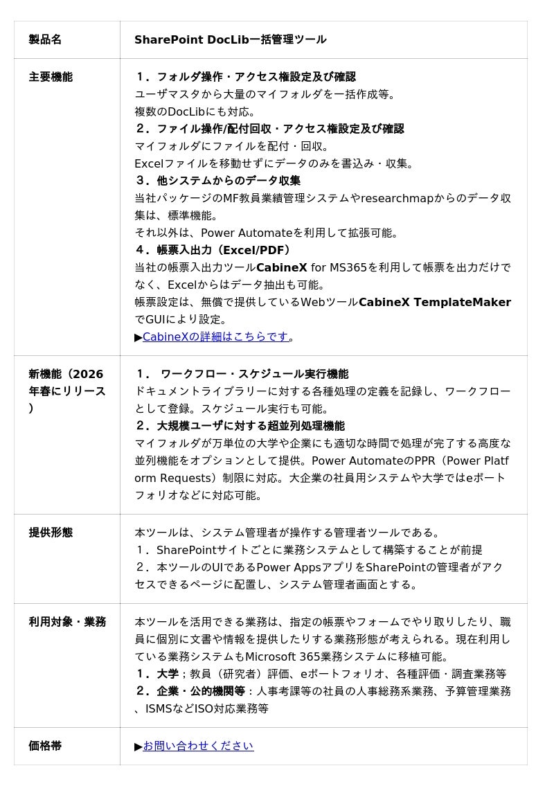 SharePoint DocLib一括管理ツールの製品詳細はこちら ▶お問い合わせはこちら