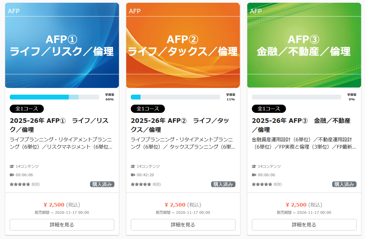 ・コスパ重視 : 受講料は、税込2,500円(AFP・CFP(R)とも)