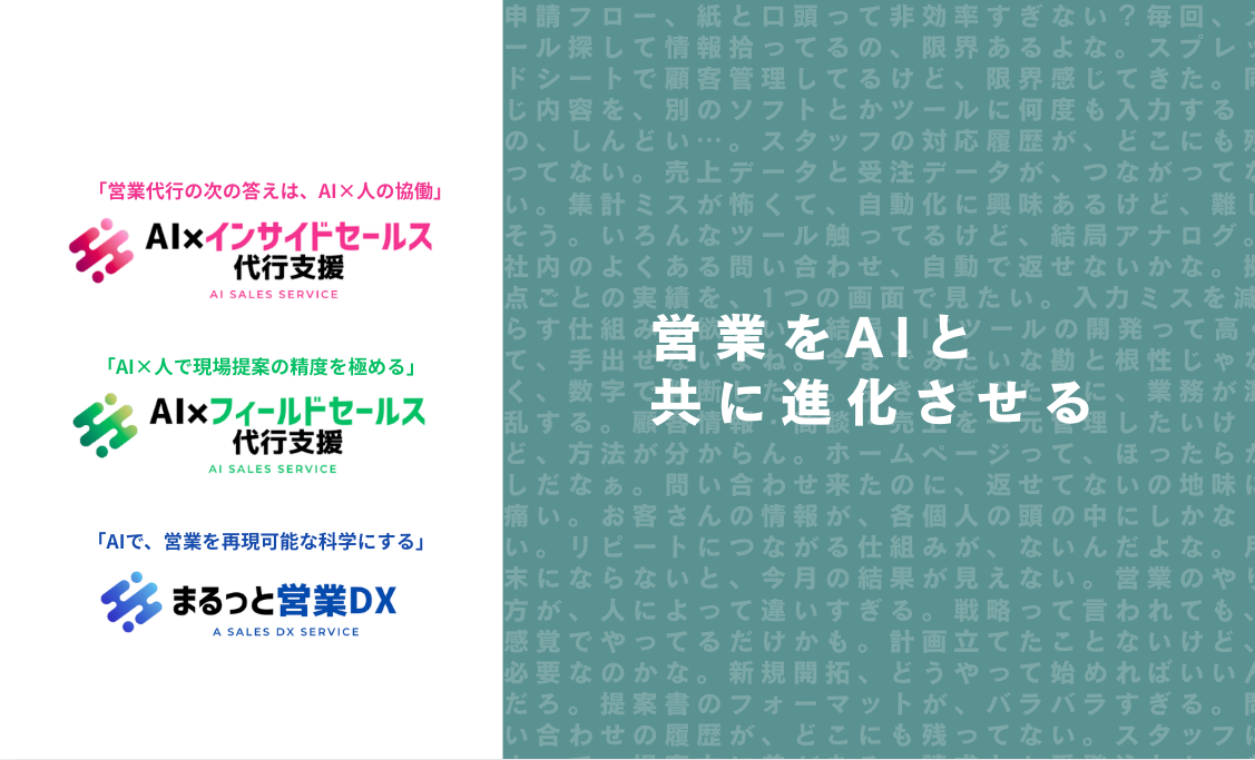 事業内容:AI×インサイドセールス代行支援、AI×フィールドセールス代行支援、まるっと営業DX