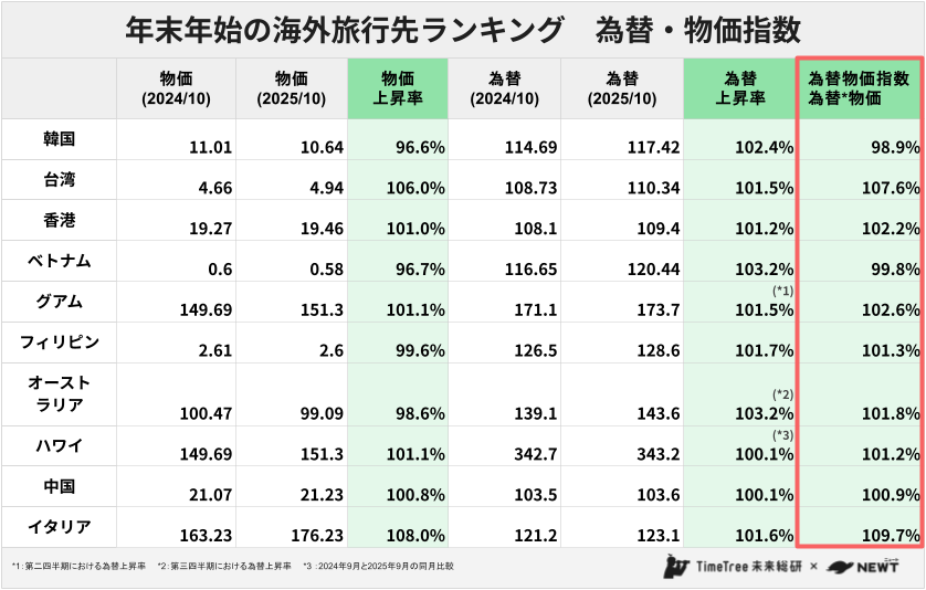 - 【為替×物価で見る海外】年末年始、コスパがいいのは韓国とベトナム!香港・イタリアは割高だが工夫次第でおトクに