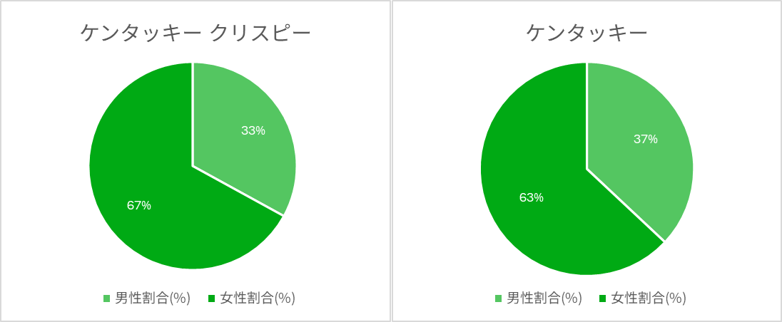 10月に「ケンタッキー クリスピー」と検索した人の男女比は女性が67%を占めており、ケンタッキー全体の検索ユーザーに比べてやや女性の比率が高くなっています。