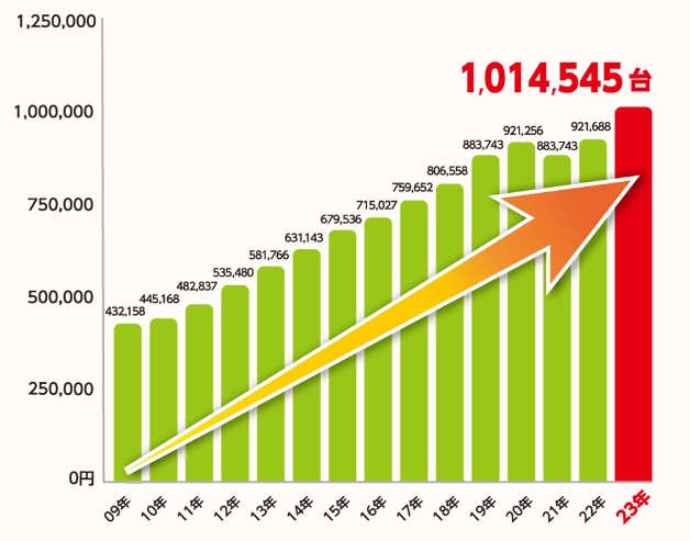 成長中の市場で、これからも伸びるビジネス!・レンタル回数は前年比110%