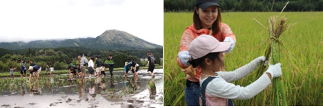 「南阿蘇の自然から育まれた地下水をこの先もずっと残していきたい、そして南阿蘇の天然水で育ったお米をその土地の天然水で炊き、そのおいしさを多くの皆さんと共有したい」という想いから、2015年より実施しています。また収穫したお米は被災地の寄付等にあてられています。