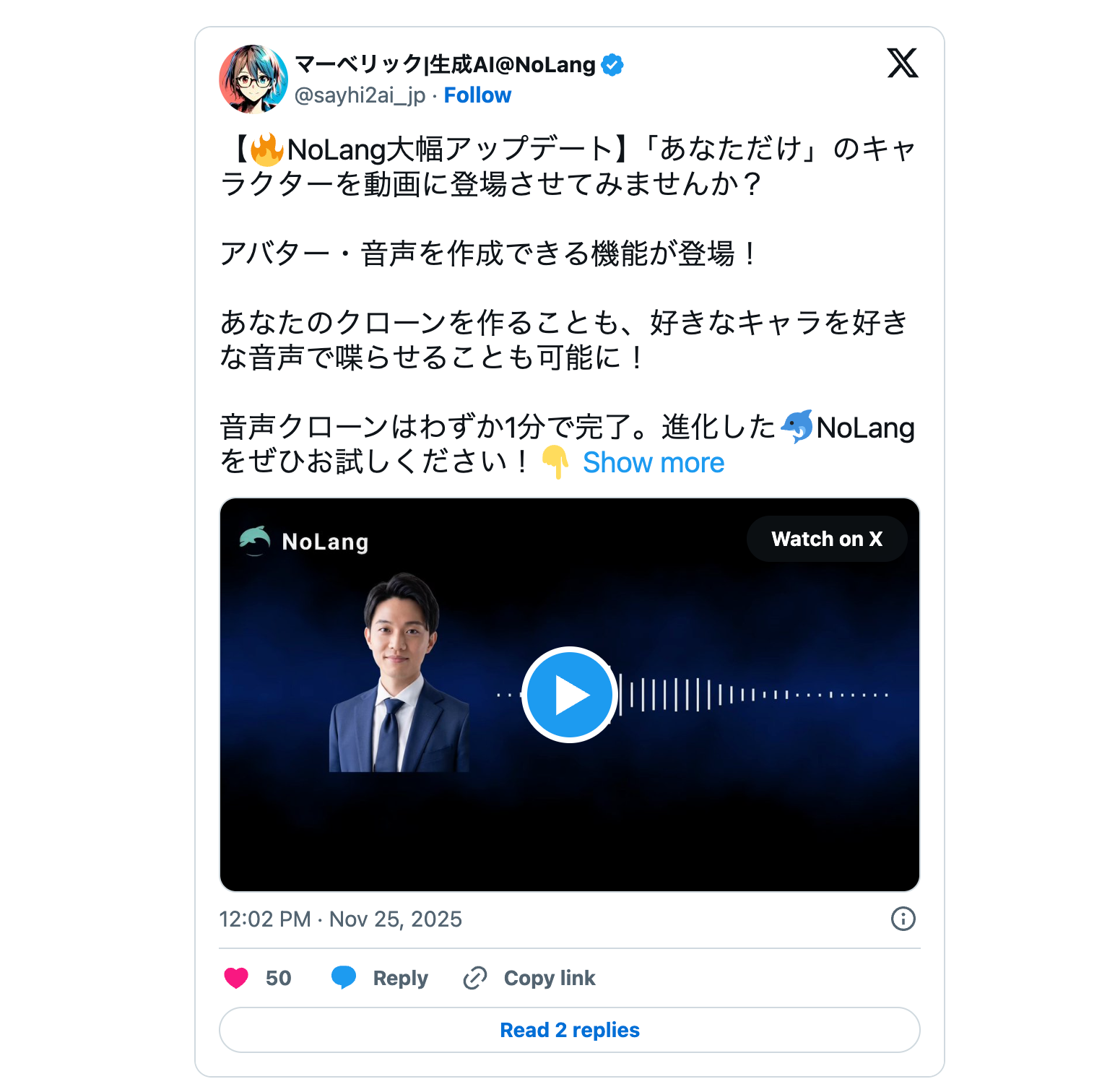 Xの元ポストはこちら(https://x.com/sayhi2ai_jp/status/1993153317158240532)
