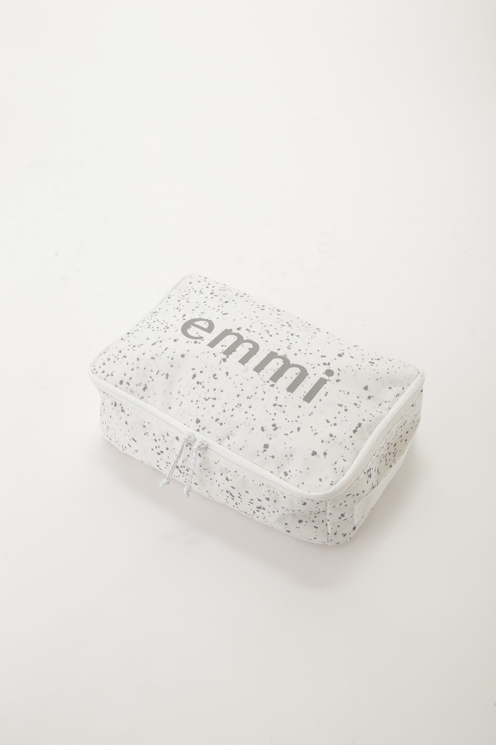 内装と同じスプラッター柄ファブリックを採用し、emmiロゴをあしらっています。