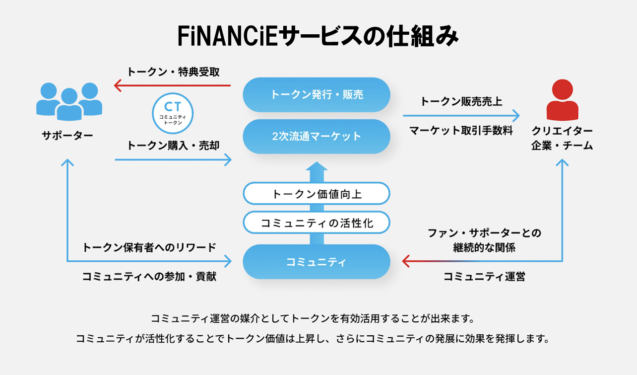 FiNANCiEは、ブロックチェーン技術を活用してトークンを発行・運用し、コミュニティやプロジェクトの成長を支援するWeb3プラットフォームです。