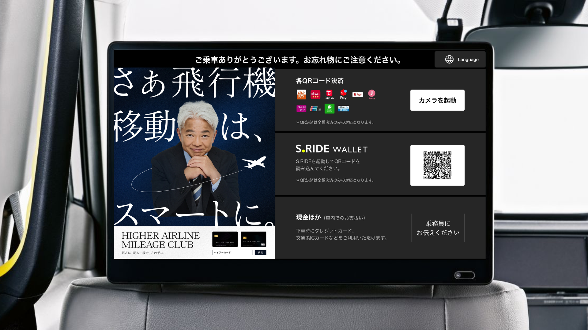 【タクシーサイネージメディア「GROWTH」対象メニュー】1.乗降車時のタッチポイントを活用した静止画セットプラン(RIDE VIEW+PAYMENT VIEW)
