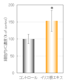 結果1 イリス根エキスが細胞内のビタミンC量を高めることを確認