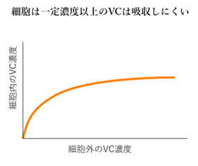 図2 細胞に添加したVC濃度と細胞内VC濃度の関係性のイメージ図