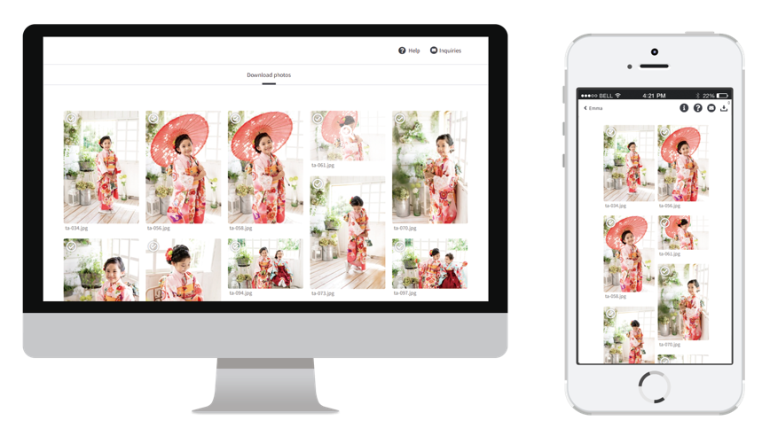 Grandpicは、オンラインでお客様へ撮影データを納品できるサービスです。
