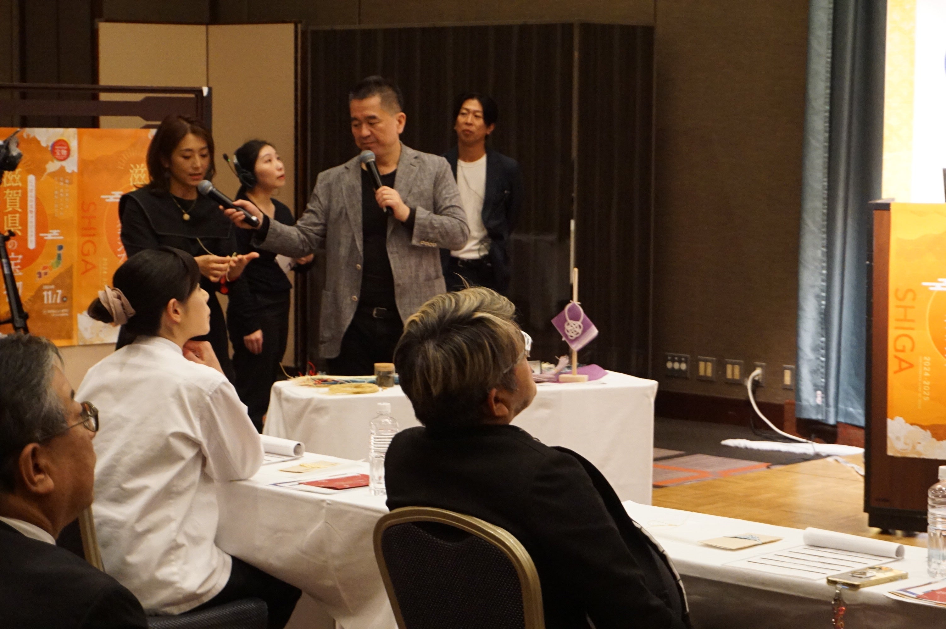 滋賀県の宝物グランプリは今年度で6回目を迎え、時代に即した商品開発を目指し、今回も多種多様な事業者が集い、互いの経営資源を持ち寄り、自社商品の磨き上げや新たなコラボレーションを生み出すことを目的に、本年8月より「滋賀県の宝物セミナー」を開催しました。滋賀県で3回にわたってリアルとオンラインのハイブリッドの形式で開催し、その他にも全国会という他の地域とオンラインで繋いだセミナーも3回実施しています。