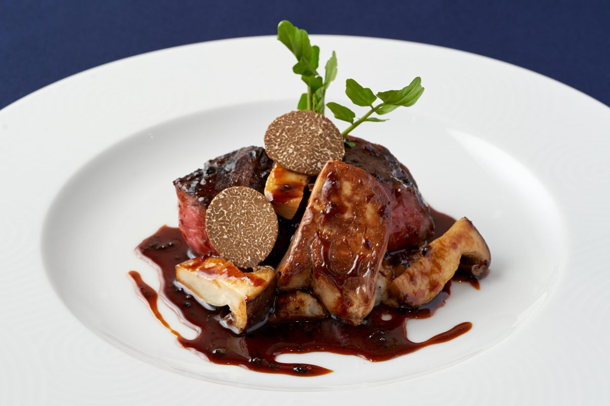 特選牛のグリエとフォアグラソテー 大黒シメジを添え 黒トリュフソースで