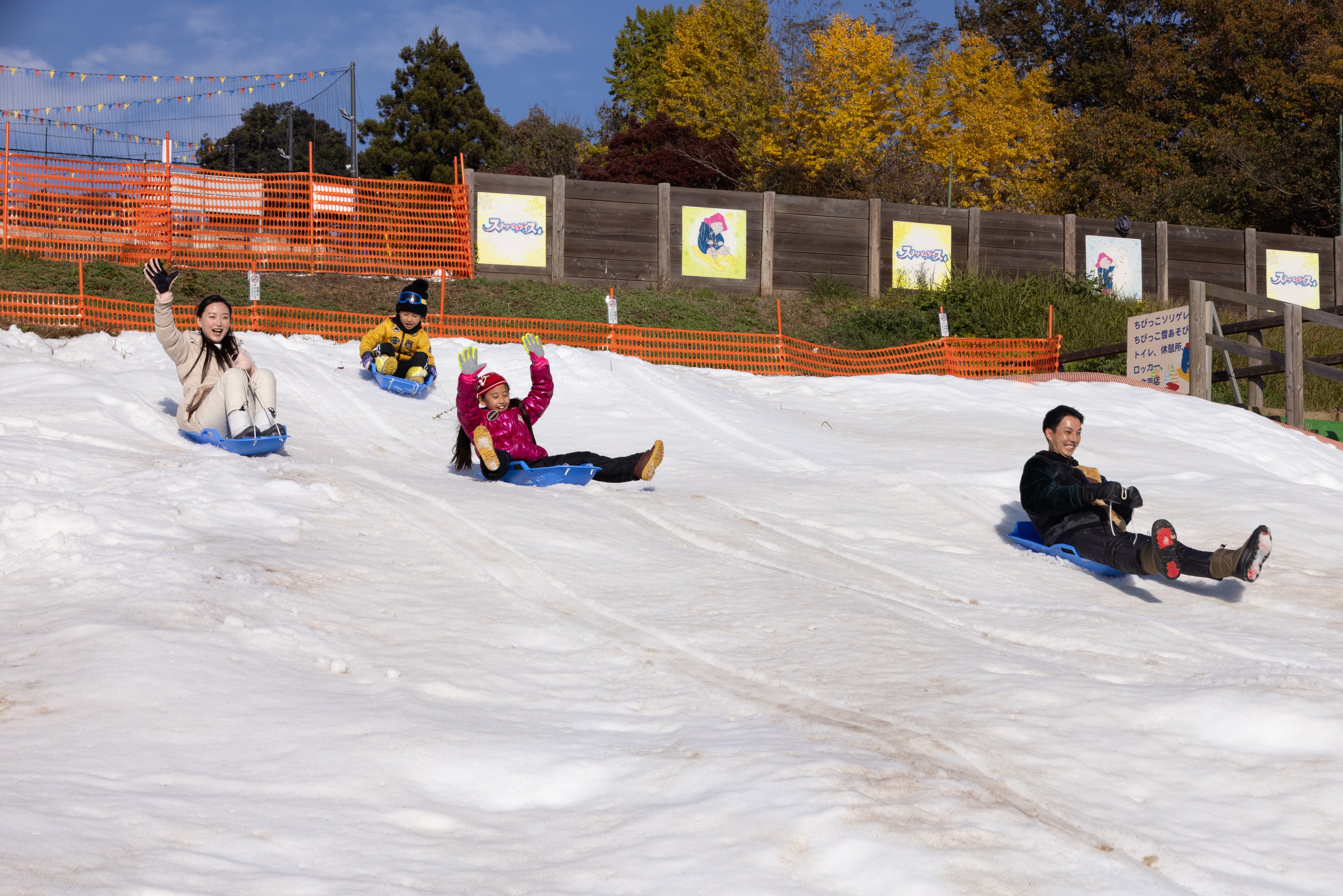 「スノーパラダイス」は、総面積約6,000平方メートル にもおよぶ広大な雪遊びスペースです。首都圏に住むお子さまたちが、都心から約50分というアクセスの良さで、豊かな森に囲まれた自然の中、思い切り雪そりや雪遊びを体験できるエリアとなっております。ふだん雪と触れ合うことが少ないご家族にも、広々とした環境ならではのレジャーをお楽しみいただけます。