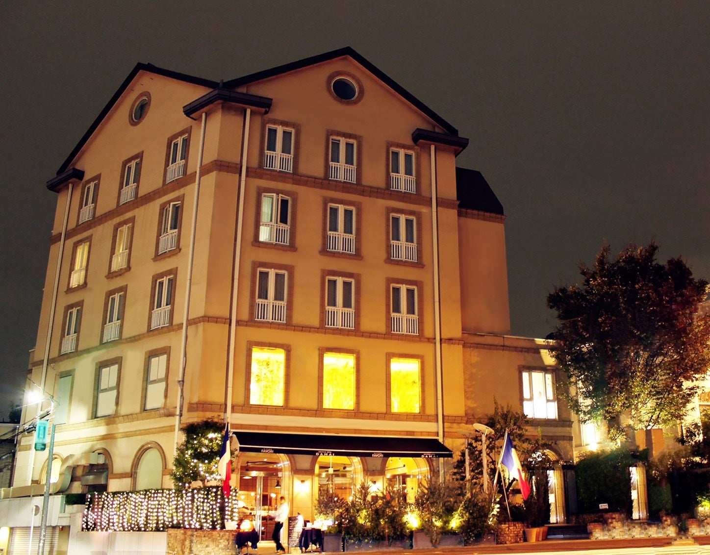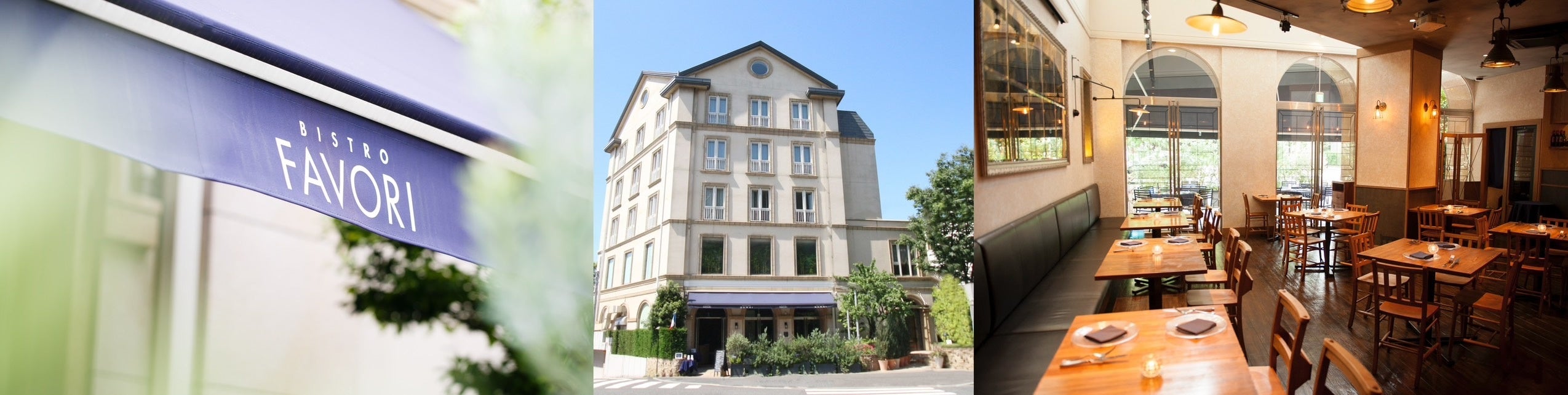 旧山手通りに佇む洋館風の建物の一階にある「BISTRO FAVORI 代官山」は、オープンテラスから代官山の街並みと、本場パリのビストロを思わせるシックな外観が目を引きます。3.5mの高天井とオープンキッチンが広がる店内とオープンテラスのお席をご用意しております。