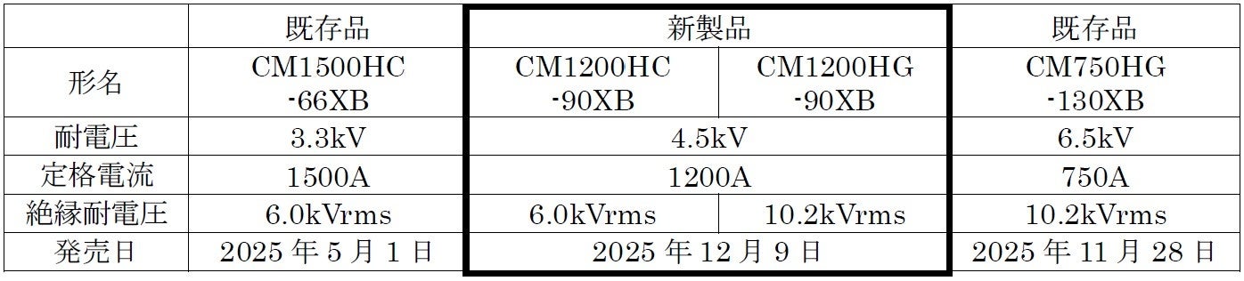 ■パワー半導体「HVIGBTモジュールXBシリーズ」製品ラインアップ