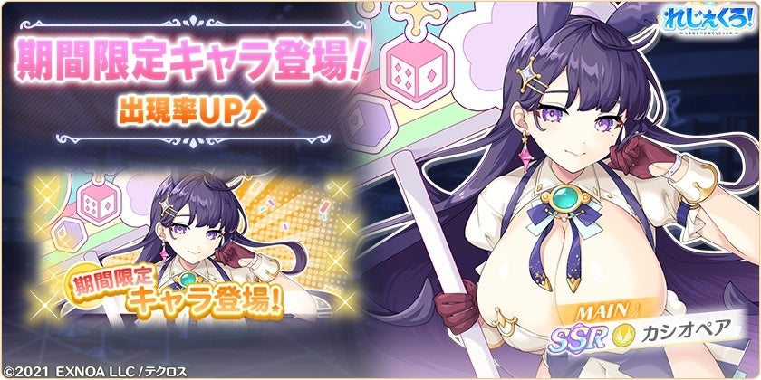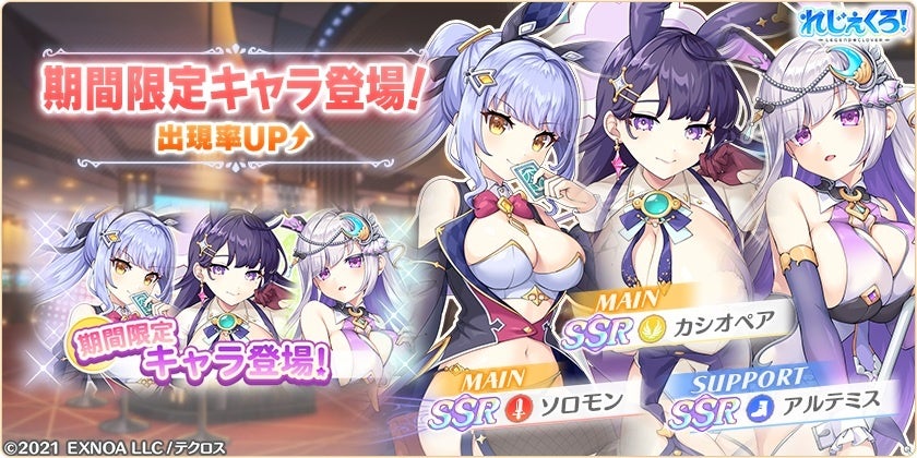 合同会社EXNOA(本社:東京都港区、CEO:東條 寛、URL:https://games.dmm.com/)が運営するDMM GAMESにおいて、真の英雄となる王道ファンタジー『れじぇくろ!~レジェンド・クローバー~』(https://www.legend-clover.net/)にて、12月2日からバニーガール衣装の「カシオペア」「ソロモン」「アルテミス」が新たに登場!さらにバニーガール衣装の「弁慶」を仲間にできるイベント「愛しき者たちと、希望を賭けて」も開催!
