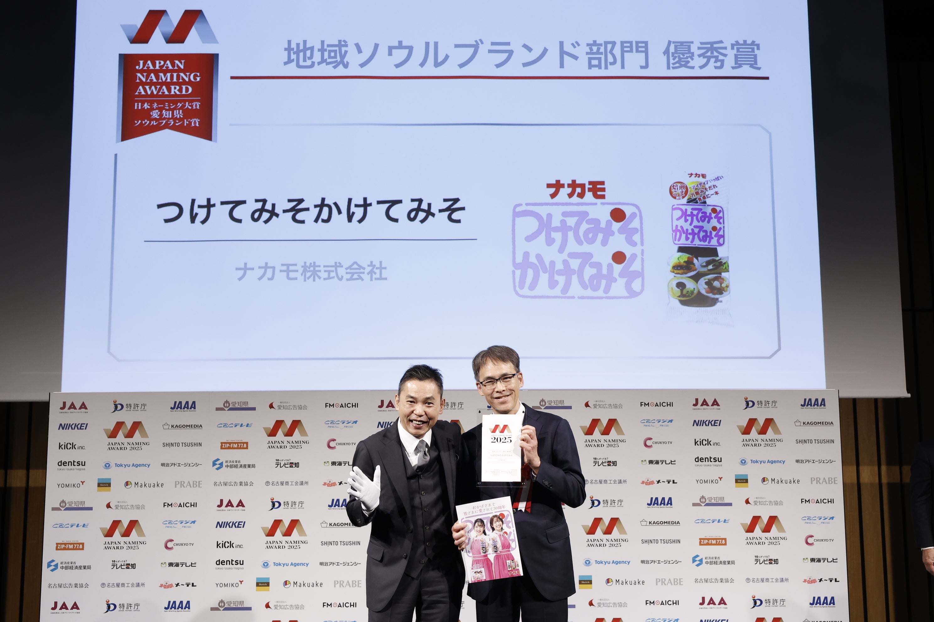 ナカモ株式会社(愛知県清須市西枇杷島町十軒裏3、代表取締役社長:杉本達哉)は、万能みそだれ「つけてみそかけてみそ」で「日本ネーミング大賞2025(主催:一般社団法人 日本ネーミング協会)」の地域ソウルブランド部門において優秀賞を受賞しました。