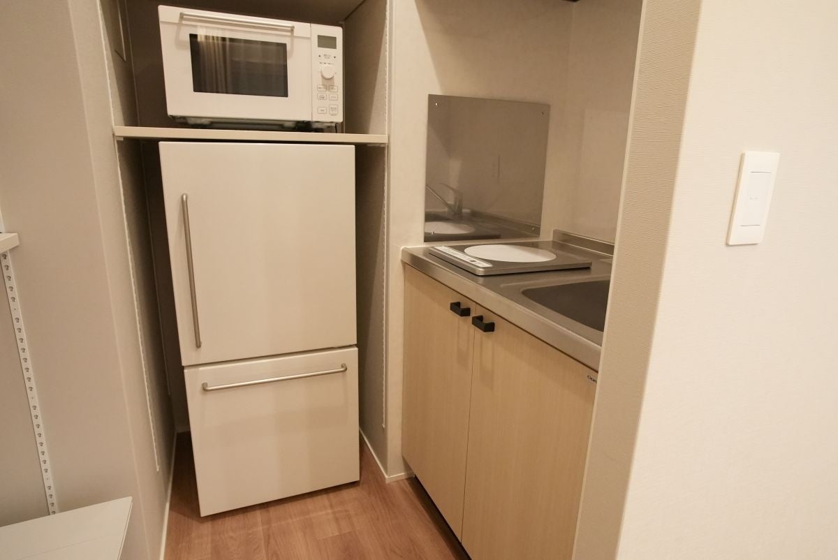 全室に、冷蔵庫や電子レンジ、IHコンロを完備したキッチンと洗濯機を設置しています。旅先であっても日々の延長線上にあるような自然体の時間を過ごせます。