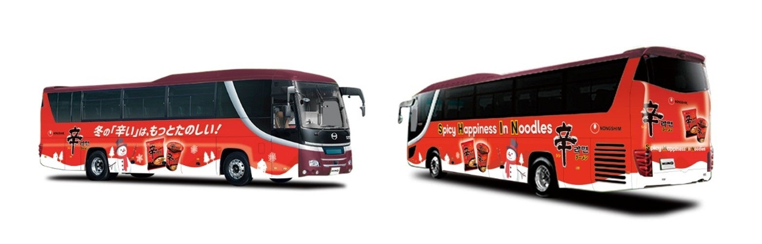 ※東京駅周辺・池袋駅周辺⇔竜王スキーパークでの一部車両のみ「辛ラーメン」デザインとなっており、すべてのバスが対象ではございません。