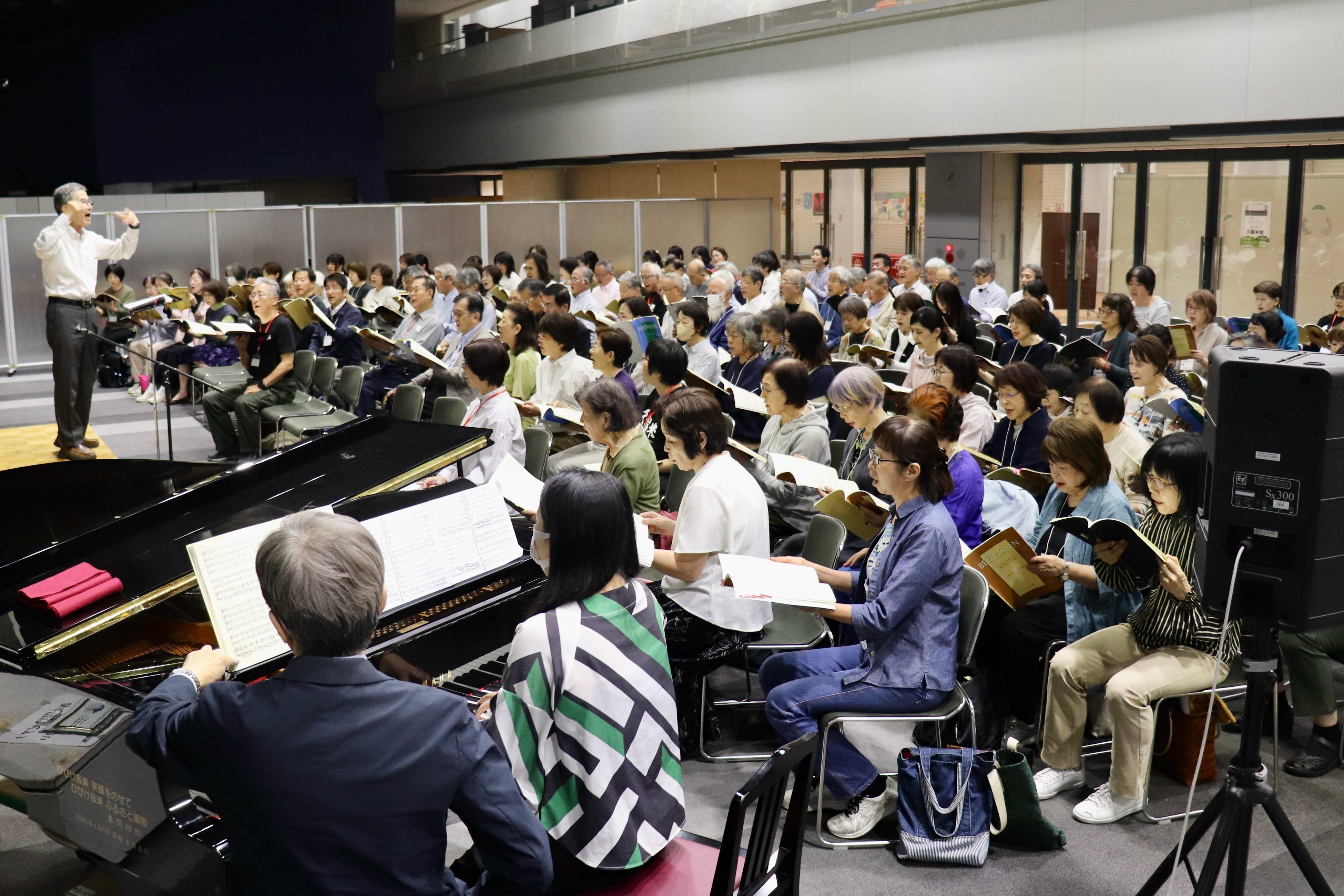 一音一音丁寧に練習を重ねる合唱団。和やかな雰囲気の中にも研ぎ澄まされた集中が走り、「第九」への深い情熱が伝わってくる。