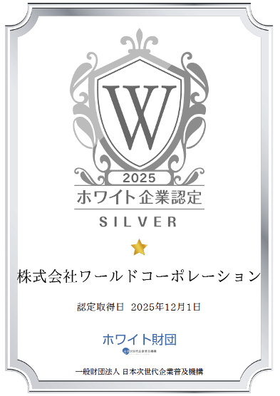 建設業界の技術者派遣を行う株式会社ワールドコーポレーション(本社:東京都千代田区、代表取締役:小林 良、以下当社)は、2025年12月1日付で、一般財団法人 日本次世代企業普及機構(以下、ホワイト財団)が認定する「ホワイト企業認定」において、シルバー認定を取得しましたのでお知らせいたします。