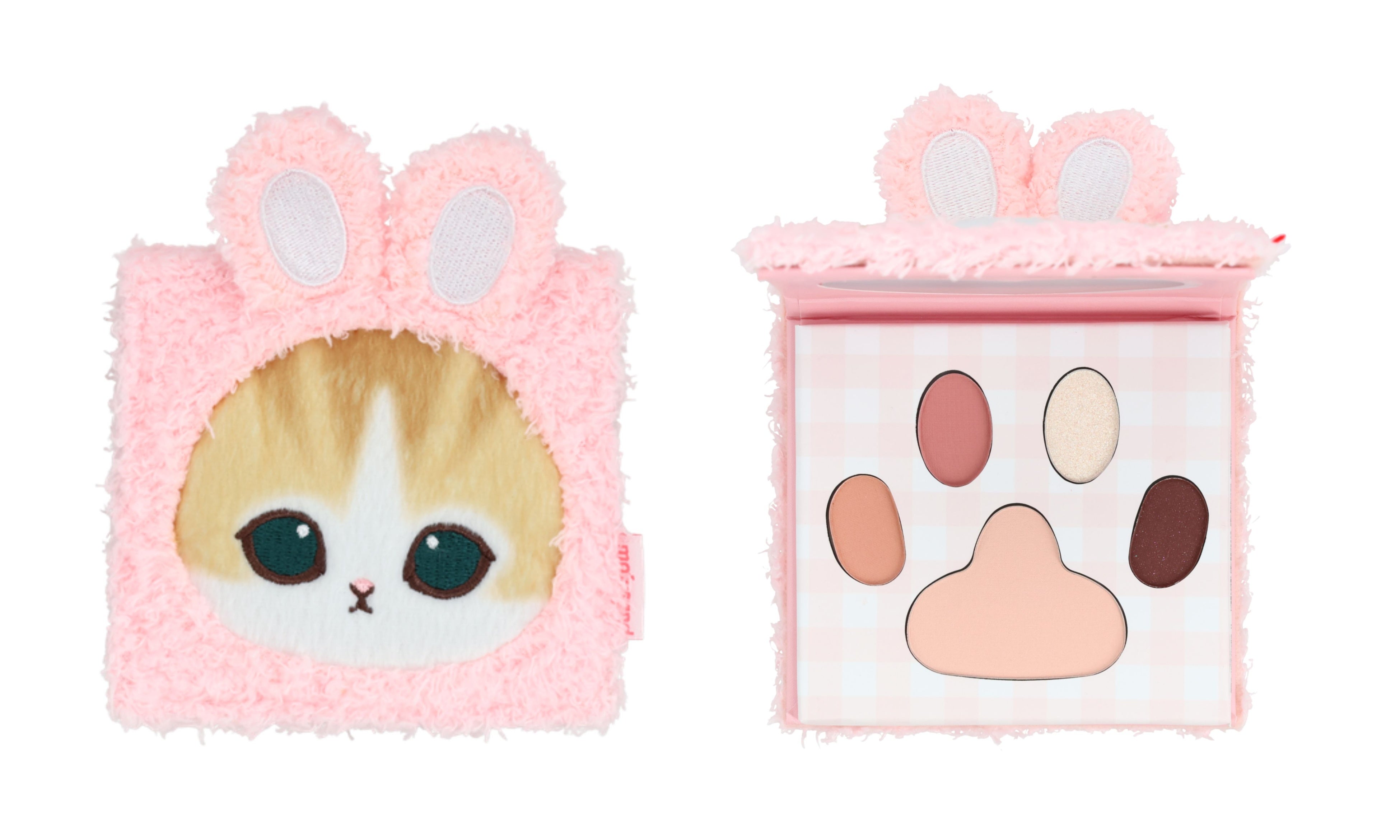 新商品は人気キャラクター『mofusand』をモチーフにした「コスメ&雑貨シリーズ」です。ラインナップはコスメが2種類と雑貨が3種類の全5アイテム。それぞれ「うさにゃん」と「くまにゃん」のデザインがあります。全5色の「アイシャドウバレット」は、肌になじむようにふわっと色づくニュアンスカラーで、異なる質感が揃っています。「缶マルチカラー」は、体温でじんわりとろけてフィットし、血色感とツヤをプラスするマルチカラーバームです。雑貨は「マスコット前髪クリップ」「フェイスミラー」「ファイスポーチ」の3種類。どれも『mofusand』のかわいさが詰まった、持っているだけで気分が上がるアイテムです。