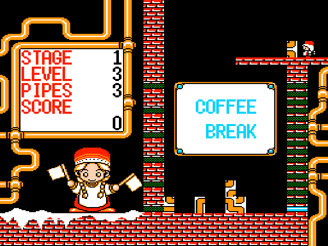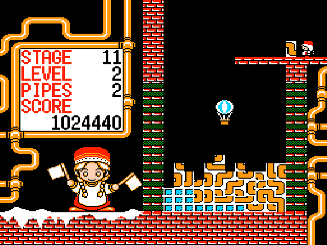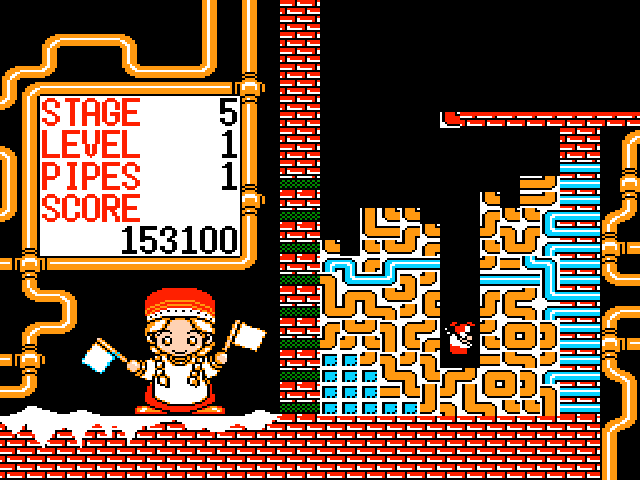 本作は1991年にリリースされたアクションパズル。プレイヤ−の目的は、次々と落ちてくるパイプブロックを使って、画面右から左へと水を運ぶパイプラインを作ること。ブロックはふたつひと組で構成されており、回転させることが可能な他、半分が宙に浮いた状態で着地すると、宙に浮いた方は分かれて落下するという、落ちゲーではお馴染みの特性を持っています。