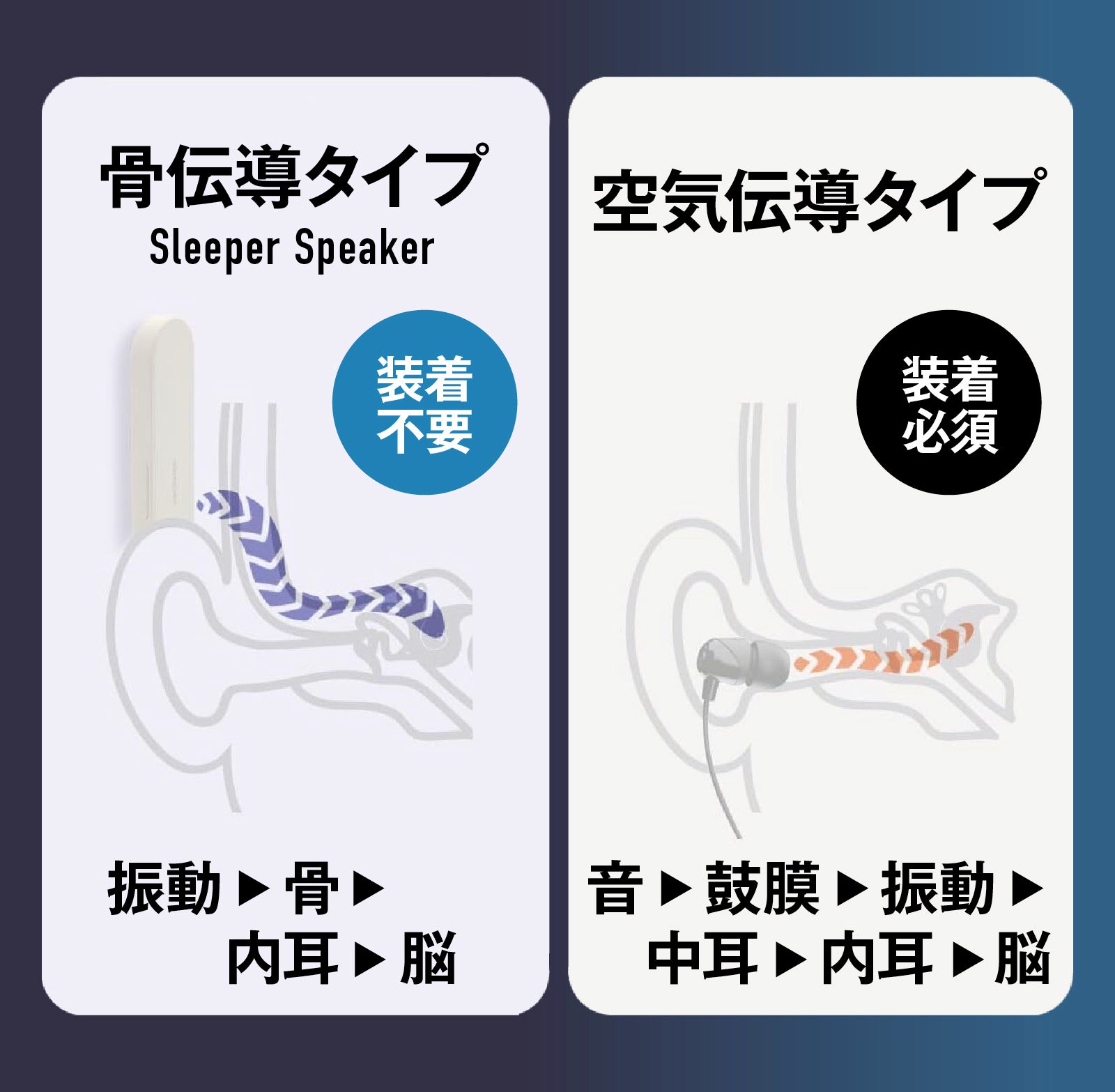 ・音の振動が枕から内耳へと直接伝わってくる骨伝導を採用