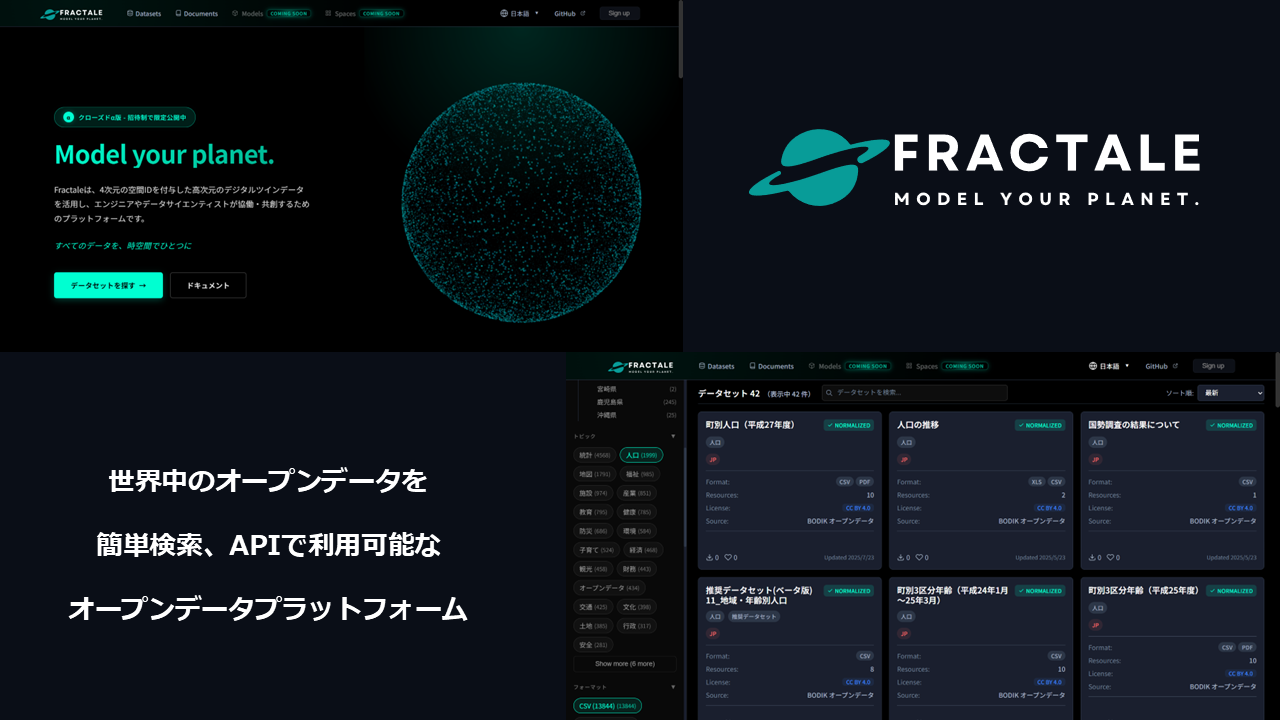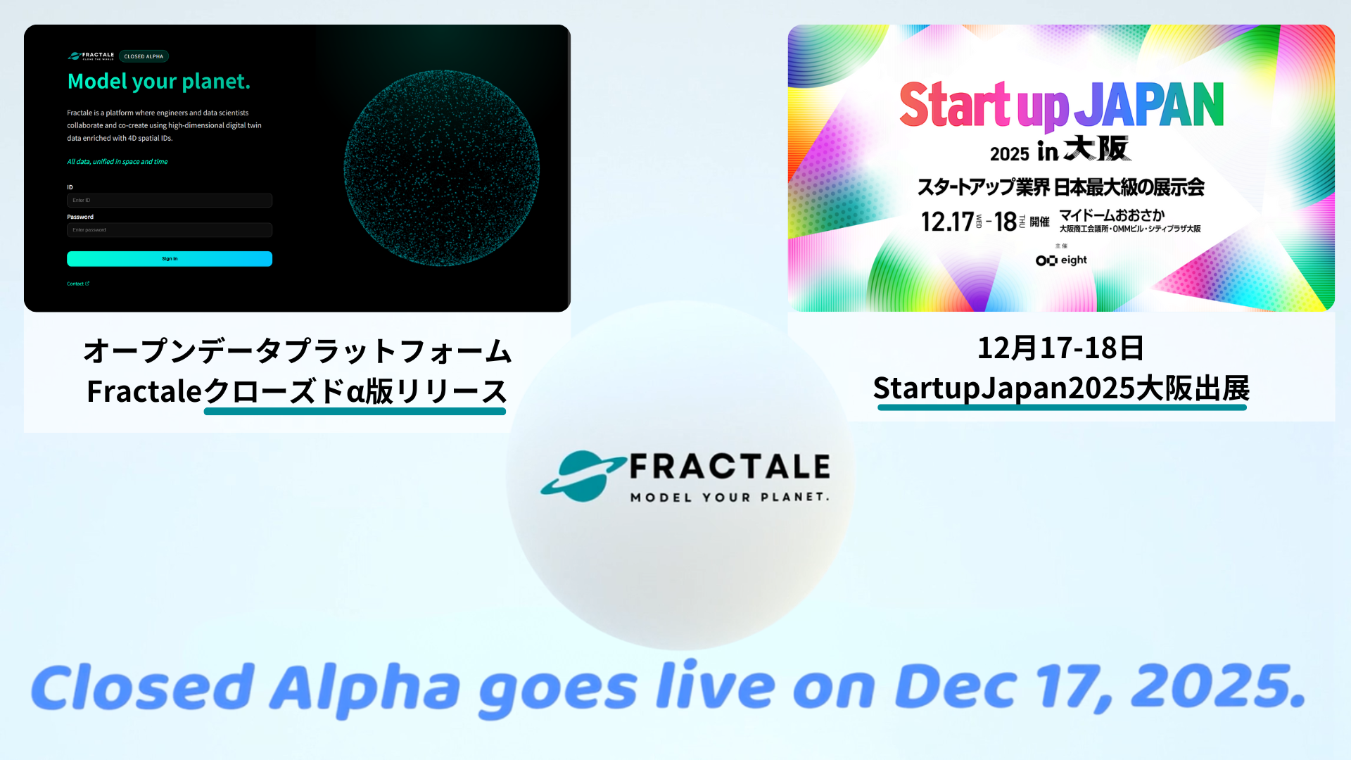 ダッタラ株式会社(本社:広島市、代表取締役:石原 裕輝、以下「ダッタラ」)は、時空間IDを活用して国内外のオープンデータを横断的に扱える新しいデータ連携基盤「Fractale(フラクタル)」のクローズドα版(招待制)を、2025年12月17日より提供開始します。