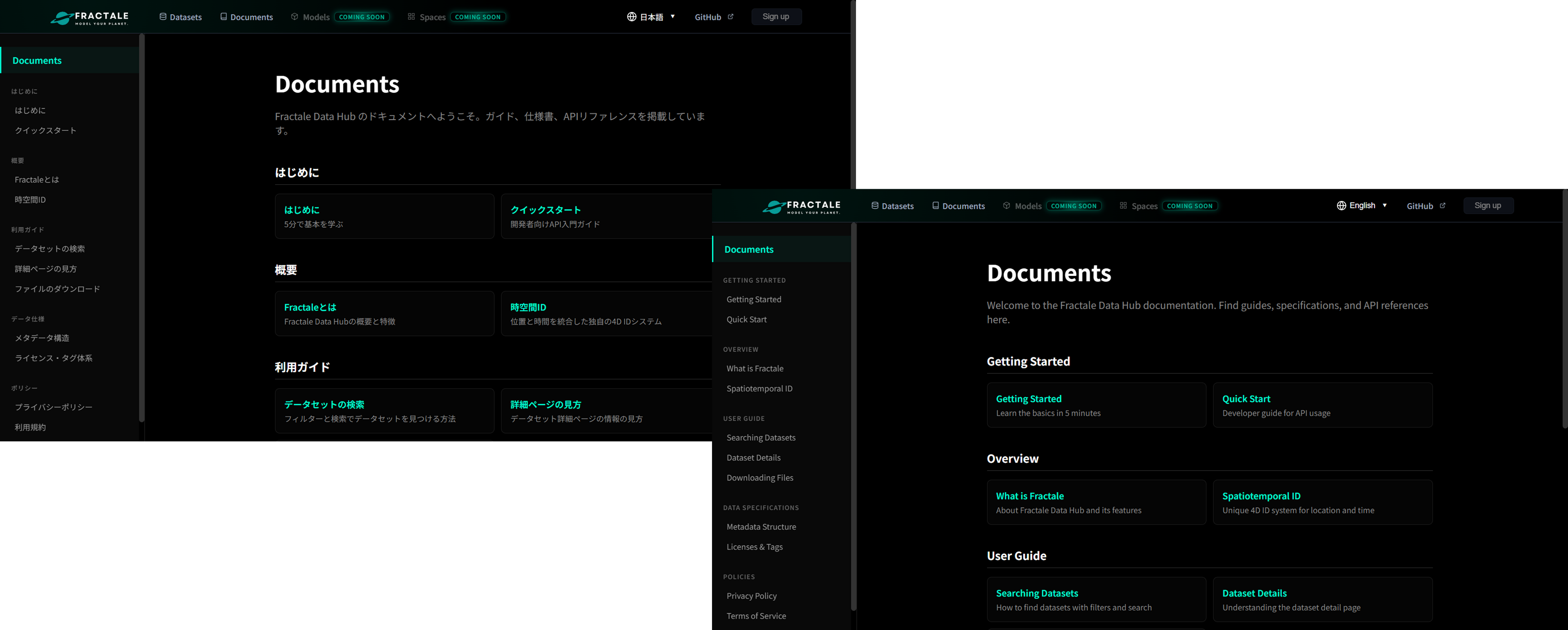 インターフェースと主要ドキュメントは日本語・英語に対応しており、国内の自治体担当者から海外の研究者・開発者まで、同じ環境で利用できます。2026年3月までに日本を含む3カ国のオープンデータセットへの対応を進め、対象となる国・地域を順次拡大し、グローバルに活用できるデータ基盤を目指します。