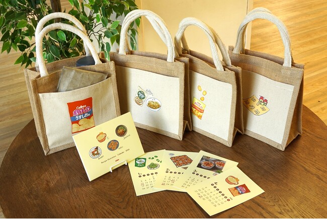 第一弾の取り組みに続き、イラストレシピをデザインに活用したオリジナルグッズ(カレンダー・トートバッグ)が販売されました。カルビーの人気スナックをモチーフにした遊び心あふれるイラストと、暮らしに馴染む実用性を兼ね備えたデザインが特長です。