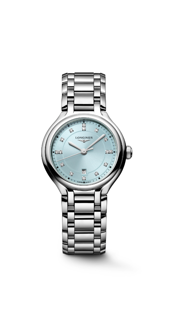 月のパワーを宿すお守りのようなジュエリーウォッチ「ロンジン プリマルナ」コレクションの最新作。フレッシュで可憐なミントブルーカラーを纏い、ダイアモンドのインデックスが輝く30mmサイズのクォーツモデルが、腕元で美しく煌めきます。ホリデーシーズンを華やかに彩り、自分へのご褒美にも、大切な人との“時を分かち合う”ペアウォッチにもぴったりのジュエリー・タイムピースです。