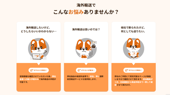 海外輸送サービス「ポチロジ」は、個人・法人問わずサービスを行っており、輸送手続きから現地配送までの物流プロセスをワンストップで提供しております。輸送品目は、日用品をはじめ、食料品、美術品、家具、ピアノ、サーフボード、ゴルフバッグ、自転車、オートバイ、自動車など、その国で定める禁制品以外は、どんなものでも送ることができる特徴があり、海外に留学するお子様や海外に赴任する家族への贈り物、海外で個展を開く美術家の作品、海外展開する飲食店事業者の食材・機器類、越境EC事業者の商品発送など、その用途や目的も多岐にわたっております。さらには、インバウンド需要も増えており、アニメグッズや楽器、オートバイや自動車などのパーツ類の発送が増加している傾向があります。発送品目では、特に重量物の輸送に競争力を発揮しており、海外の新たなマーケットに進出するEC事業者の海外発送やメーカーなど、BtoB需要の拡大を見込んでおります。サービス名の由来は、ECサイトの様にクリックするだけで簡単に世界へ荷物を送れるサービス「ポチっと物流」から。