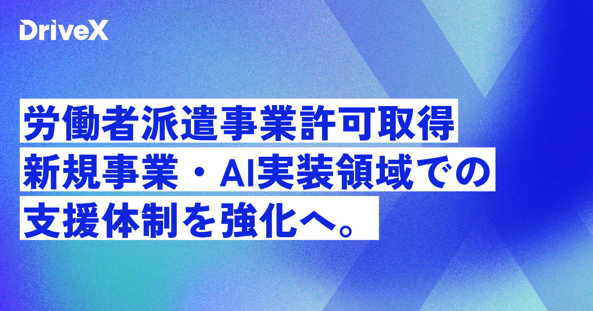 今回の許可取得により、DriveXがこれまで提供してきた新規事業創出支援・AI実装支援に加え、企業のニーズに応じてAI人材・エンジニア人材を柔軟に提供できる体制が整いました。