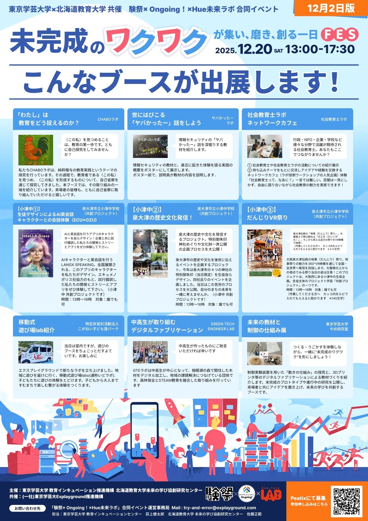 ・ 主催:東京学芸大学 教育インキュベーション推進機構、北海道教育大学未来の学び協創研究センター