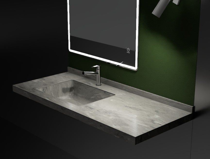 また、同素材のカウンターと組み合わせることで、接合部まで美しく仕上がります。さらに、オプションのコーリアン(R)製排水化粧キャップをボウルと同色で合わせれば、統一感を持たせながら排水部分を隠すことができ、より洗練された洗面空間へと導きます。