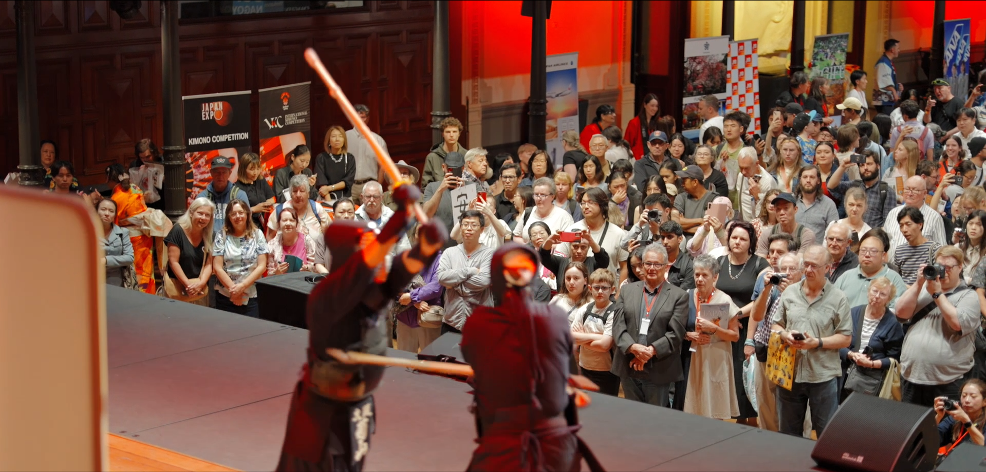 特にオーストラリアのJAPAN EXPOは、通常は立ち入ることができないシドニー市庁舎を会場とする特別な催しであり、その歴史ある舞台で約20分にわたり剣道ステージを披露しました。
