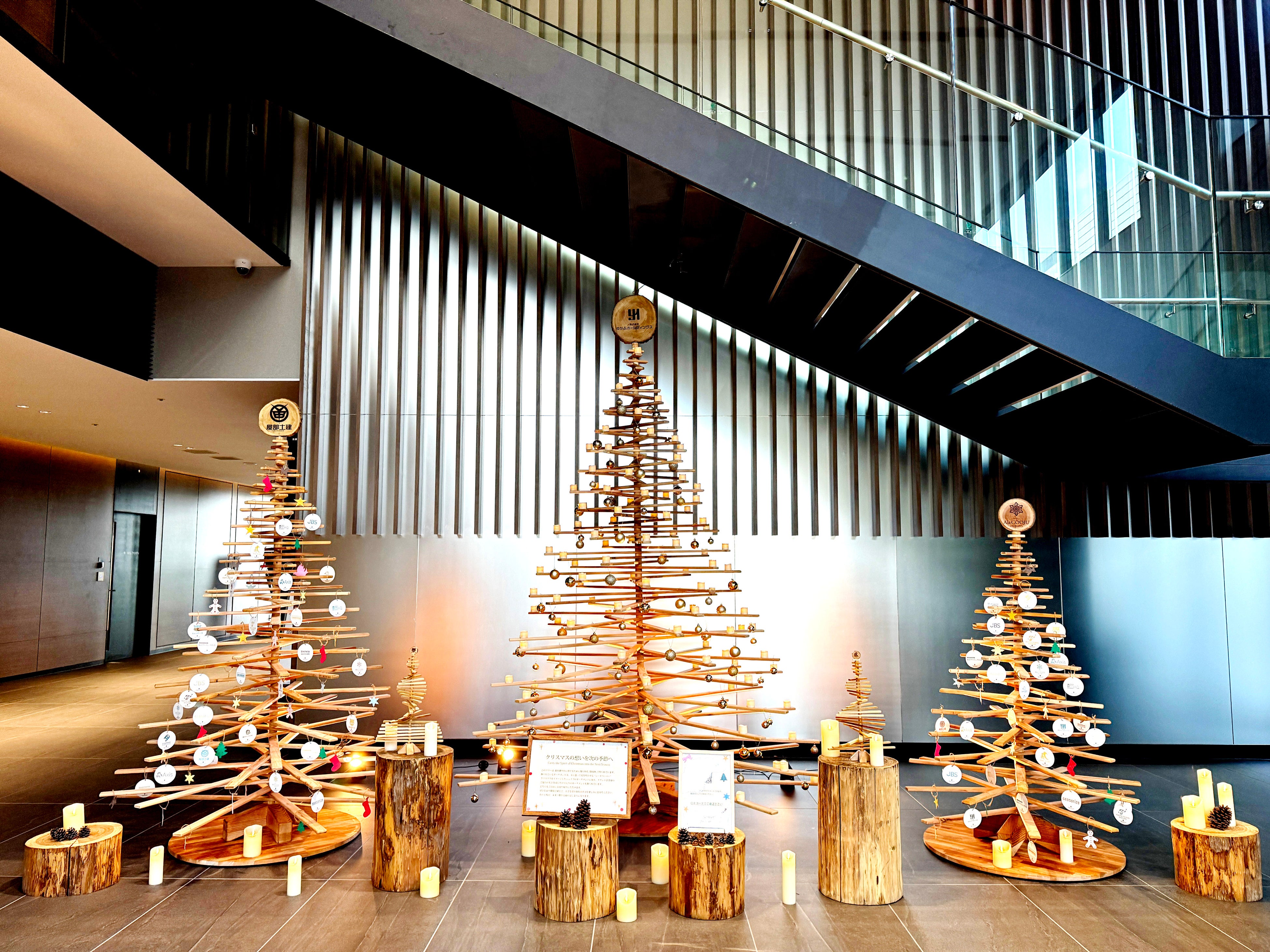 期間中は館内全体が木のぬくもりに包まれ、穏やかで心地よいクリスマスムードをお過ごしいただけます。ご来館の際はぜひ足を止めて、サステナブルな間伐材ツリーの温かさをご体感ください。