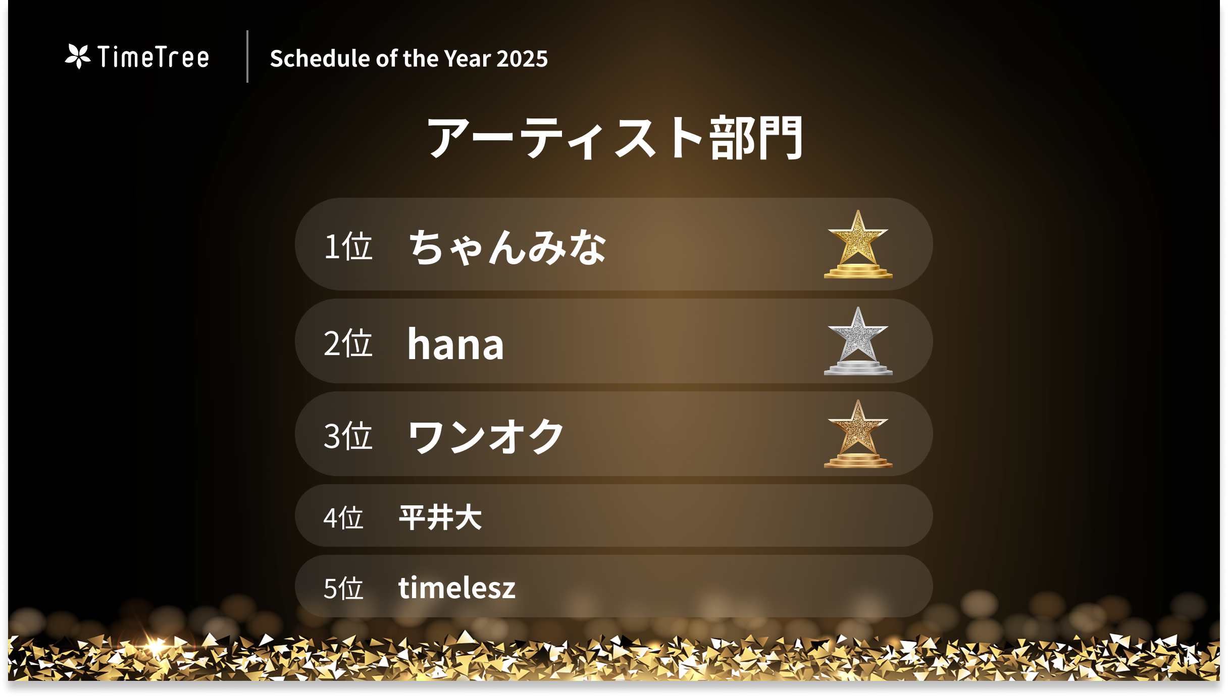 株式会社TimeTree(本社:東京都新宿区、代表取締役社長:深川 泰斗)の社内研究所『TimeTree未来総合研究所』(https://timetreeapp.com/intl/ja/future-research-institute)は、「カレンダーの日」として知られる12月3日、国内累計3000万超のユーザーが「TimeTree」のカレンダーに登録したデータをもとに、2025年を象徴する“予定”トレンドを表彰するアワード「TimeTree Schedule of the Year 2025」を発表いたしました。