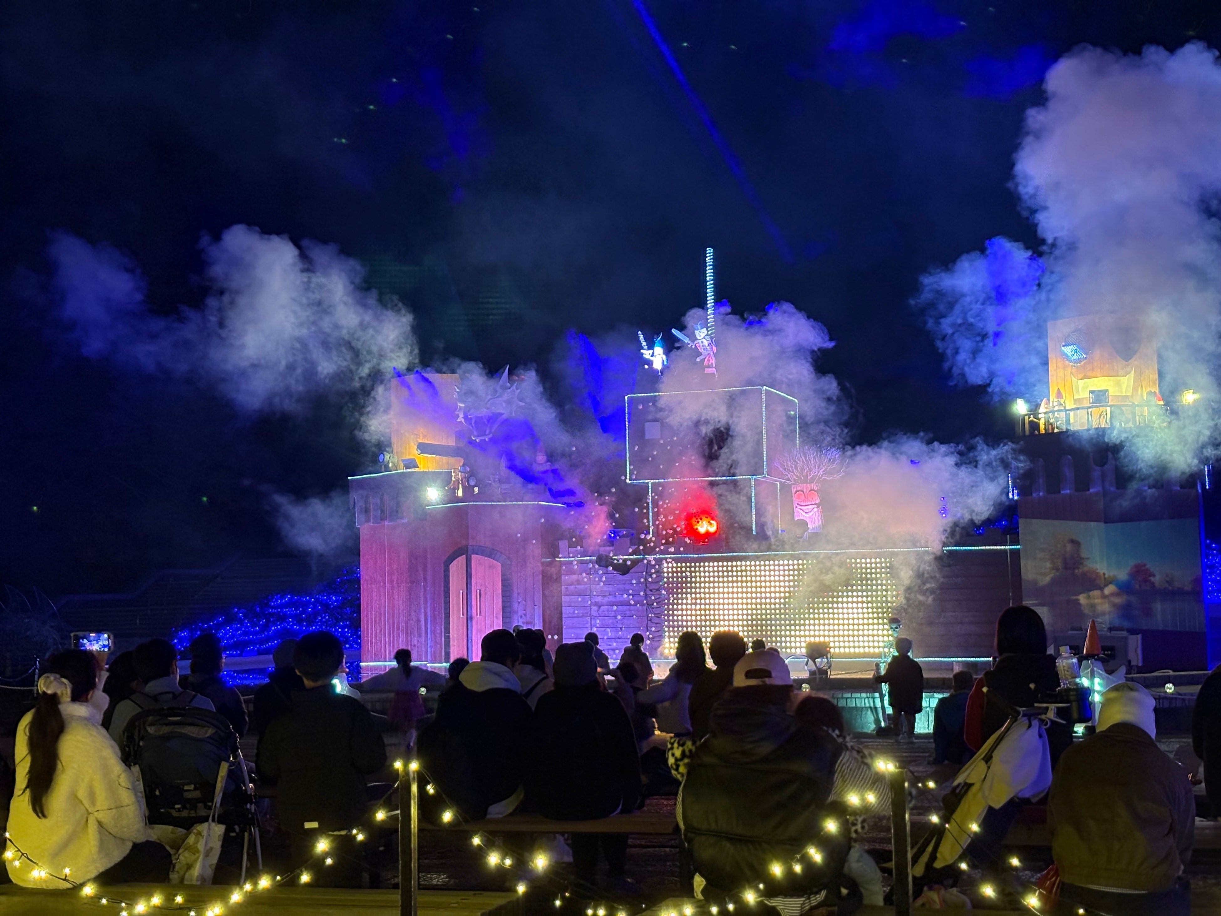 中央口広場噴水内の古城では、森の妖精「モーリー」が主役となって展開されるオリジナルStory「モーリー王子の大冒険 最終章~聖夜~」のショーをご覧いただけます。カラフルなライトアップやスモーク、レーザーやプロジェクションマッピングなどにより進んでいくドキドキの物語は必見です。第1章・第2章を見逃した方も楽しめるよう動画配信しているので、安心して続きをご覧いただけます。また、植物園花壇では光と音の演出による「もみじぃの魔法de SHOW」やカエデ園の光のショーなど、見どころが盛りだくさんです。[画像2: https://prcdn.freetls.fastly.net/release_image/32901/615/32901-615-c63486e221ce5dfad374f6fc128b0067-3900x2925.jpg?width=536&quality=85%2C75&format=jpeg&auto=webp&fit=bounds&bg-color=fff ]