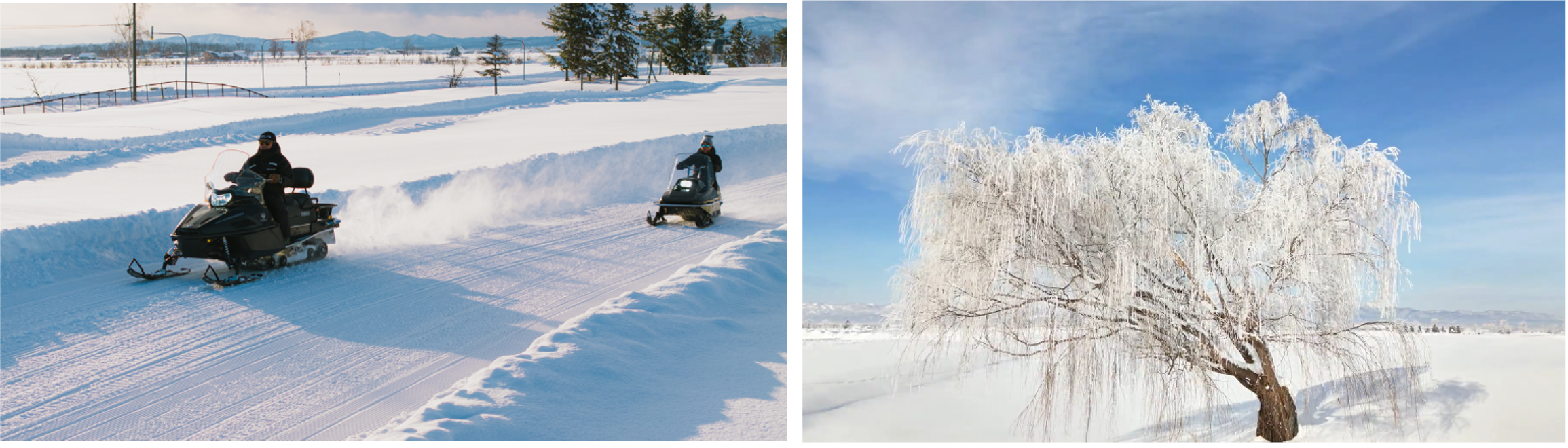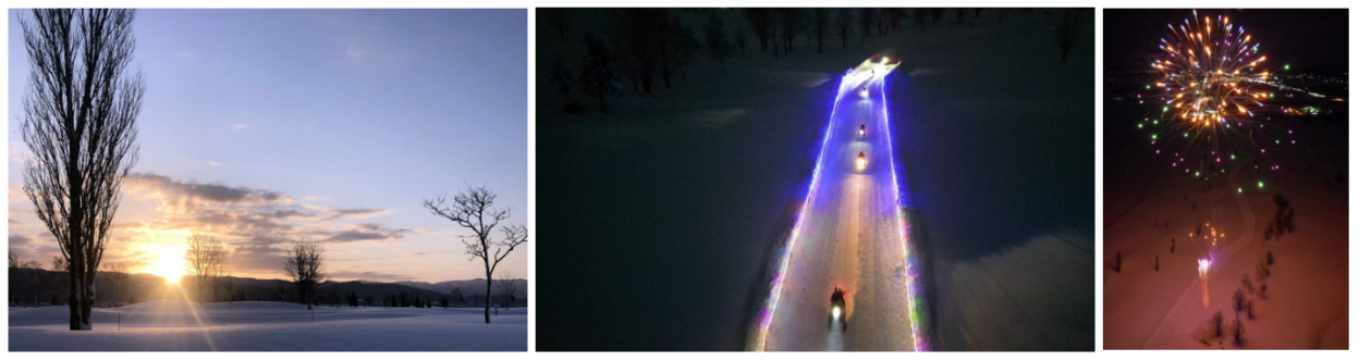 12/23~12/28の期間限定で、サンセットともにスタートするスノーモービルツーリングの特別プランを用意しています。LEDで幻想的に彩られたコースの滑走とスノーチューブ体験ができ、12/24~12/25はクリスマス限定花火ショーを開催します。夜空に咲く大輪の花火が雪景色をロマンチックに照らします(要事前予約)