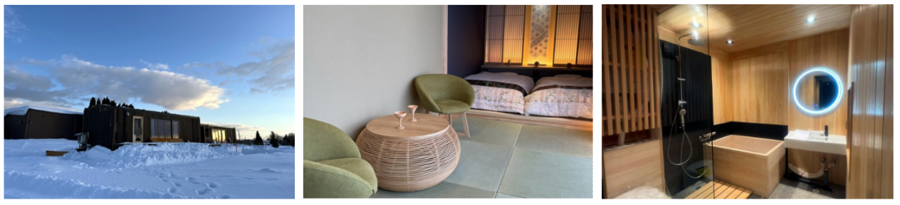 Alpen SNOWLAND美唄内に待望の宿泊施設『Hokkaido ZEN Cabin』が登場!1棟3名様まで貸し切りですので、プライベート空間で北海道の大自然をお楽しみいただけます。室内は、日本の伝統美とウェルビーイングを融合させた、洗練された癒しの空間です。畳の心地よい香りが漂い、障子越しに柔らかな光が差し込むことで、穏やかで落ち着いた雰囲気を演出します。
