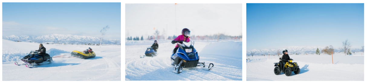 Alpen SNOWLAND美唄では、スノーモービル、スノーラフティング、子供も運転できるミニスノーモービル、4輪バギーなど、多彩なスノーアクティビティを楽しむことができます。特に、子供向けの雪遊びエリアは家族連れに大人気です。