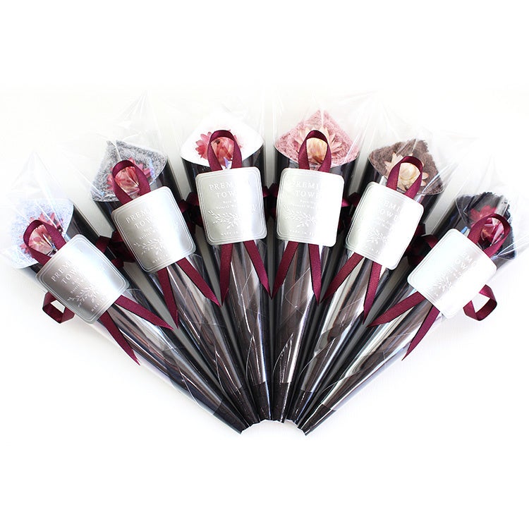 まるで"花束”。タオルのブーケに華やかな花を包み込み、お洒落なビジュアルと上質な肌触りを兼ね備えた極上のハンドタオルギフト。天然木材を主原料とした高級繊維が、まるでシルクのクッションに触れたようにしっとりと滑らかな感触をもたらす逸品です。