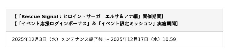 今回の舞台は「Rescue Signal:ヒロイン・サーガ エルサ&アナ編」。