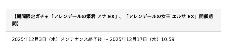 ■期間限定ガチャに新キャラクター「アレンデールの姫君 アナ EX」、「アレンデールの女王 エルサ EX」が登場!