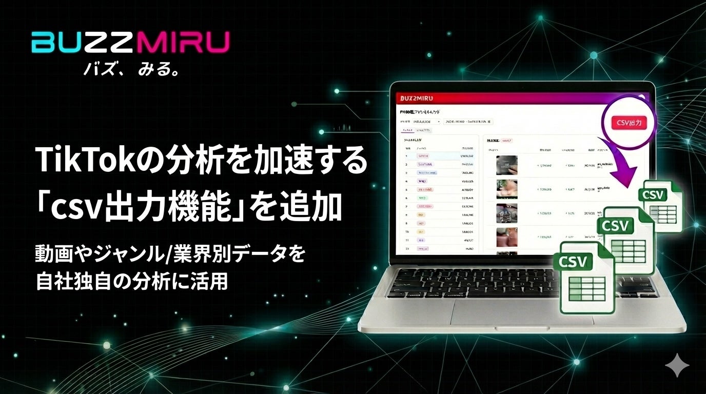 2025年12月1日、株式会社Isle(アイル)(東京都新宿区、代表:成宮邦亮)は、TikTokのバズ動画を効率的にリサーチできる『BUZZMIRU(バズミル)』に「csv出力機能」をリリースしました。本機能により、5000万以上の動画データや各種トレンドにおけるデータを活用したレポート作成や市場分析の効率化を支援いたします。